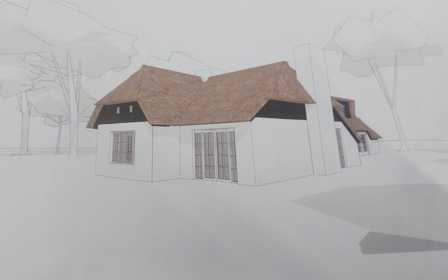 Bij deze woning zijn wij volop bezig met een mooie verbouwing. Een groot deel van de bestaande gevels blijft behouden, terwijl het dak volledig wordt vernieuwd. Het nieuwe rieten dak begint al vorm te krijgen en zal de woning straks een karakteristieke en warme uitstraling geven.